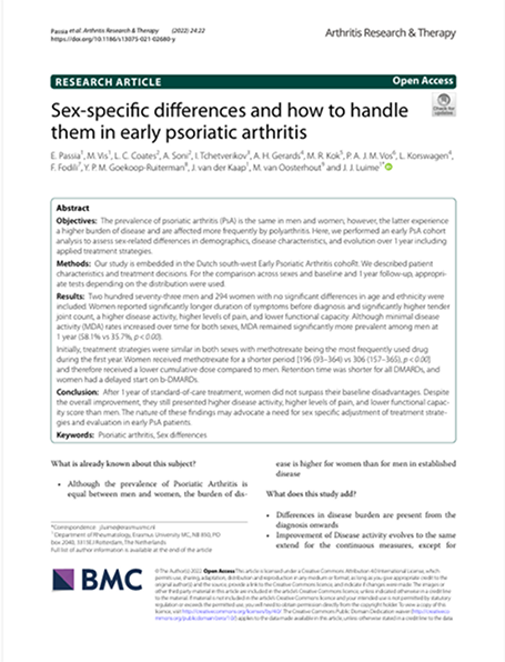 Sex-specific differences and how to handle them in early psoriatic arthritis